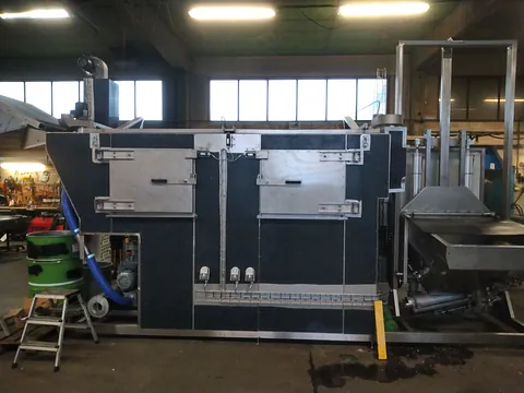 Oktober 2022: Två Robottvättar levererade till kund i Sverige. Maskinen är byggd för att stå i en ingärdad robotcell. Maskinen är utrustad med två tankar för tvätt/skölj, båda tankarna har automatisk vatten och kemipåfyllning. Tvättanken är utrustad med jacuzzipump som spolar godset under ytan via ett specialgjort spolrör anpassat efter godset. Vätskan renas av partikelfilter med tryckgivare för att indikera när filtret behöver bytas. Sköljtanken innehåller inga funktioner utan godset sköljs genom att röras runt i tanken. Maskinen är också utrustad med ett blåsskåp för att torka godset. blåsskåpet innehåller fyra blåsmunstycken med variabelt flöde. För att läsa mer om våra robottvättar se här.
